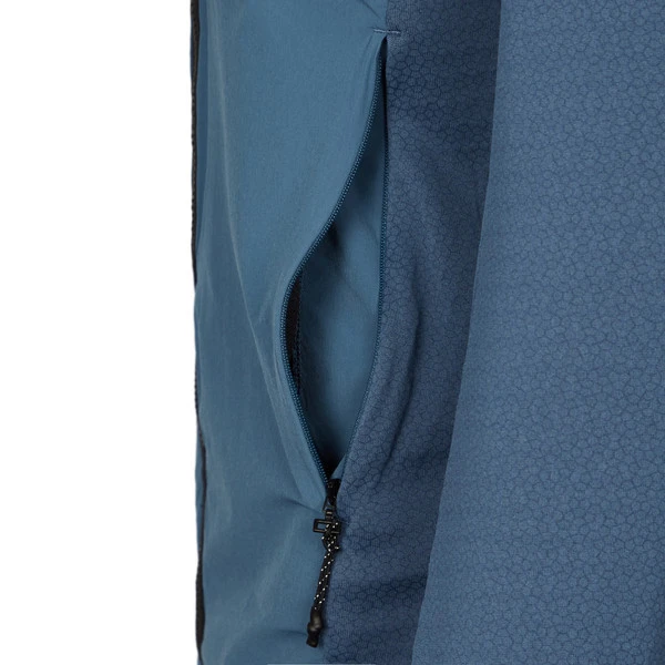 Im Innern ist das Material leicht angeraut und weist noch dazu eine Wabenstruktur auf. Diese verbessert den guten Feuchtigkeitstransport und sorgt für die nötige Portion Wärme bei leichter Kälte. Für Stauraum bei Wander- und Trekkingtouren ist die Jacke mit zwei RV-Taschen und einer RV-Brusttasche ausgerüstet, in denen Energieriegel, GPS und Co. einen sicheren Platz finden.