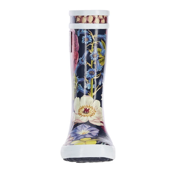 … und mit den Füßen in trockenen Tüchern: Innen kommt bei diesem Kindergummistiefel feuchtigkeitsleitendes Mischgewebe an den Fuß; unter der Fußsohle dämpft eine Einlegesohle mit feuchtigkeitsleitendem Obermaterial. Das Schaftende zieren zwei zarte Ringel; im Fersenbereich kommt reflektierendes Material zum Einsatz. Für eine hübsch umringelte Wade und sichere Pfützensprünge in der Dämmerung.