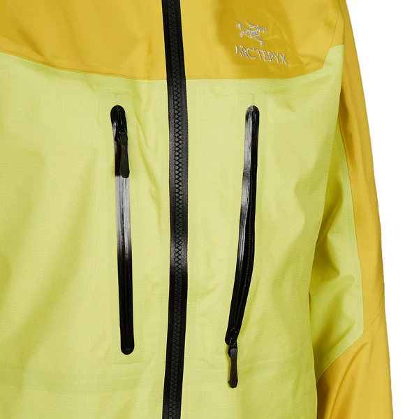 Bei der Alpha Jacket kommt eine Kombination aus innovativen High-End Materialien zum Einsatz, sodass sie den Balanceakt zwischen Leichtgewichtigkeit und Robustheit problemlos schafft. Im Bereich der Schultern, Ärmelaußenseiten und Kapuze – Stellen, an denen du maximalen Schutz brauchst – findet sich Gore-Tex Pro mit Most Rugged Technologie für extreme Abriebfestigkeit und Langlebigkeit beim Tragen schwerer Rucksäcke. Am Rest der Jacke kommt dreilagiges Gore-Tex in Kombination mit dem Hadron Obermaterial zum Einsatz, um das Gesamtgewicht der Jacke möglichst niedrig zu halten.