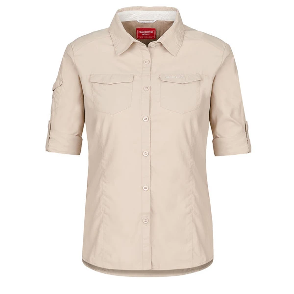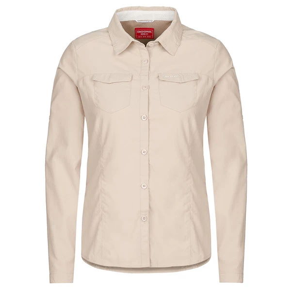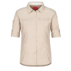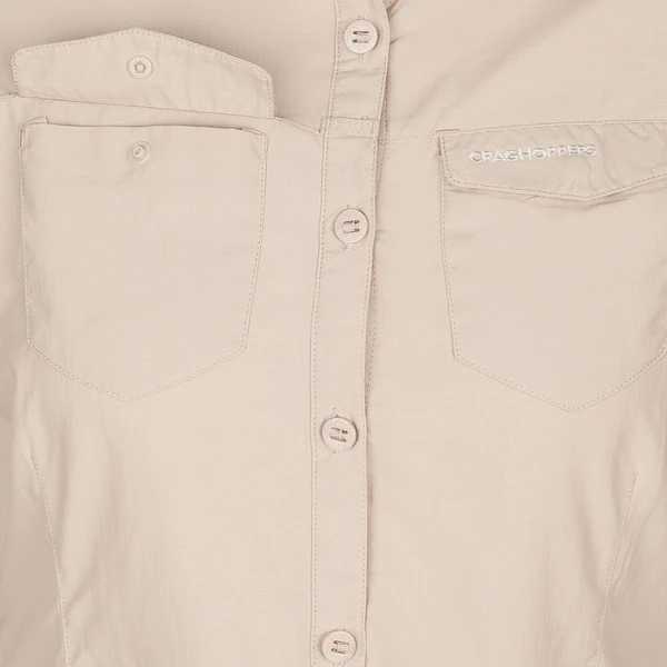Die Bluse ist angenehm leicht und dünn, dank ihres Polyamid-Materials mit dezenter Ripstop-Struktur ist sie aber trotzdem ausgesprochen robust und langlebig. Das Material hat einen angenehm weichen Griff und kann mit feuchtigkeitsleitenden und schnelltrocknenden Eigenschaften aufwarten. Ein Netzfutter am Nacken und am oberen Rückenbereich optimiert das Feuchtigkeitsmanagement und verschafft dir wohltuende Belüftung – äußerst praktisch beim schweißtreibenden Einsatz oder bei brennender Sommersonne! Eine geruchshemmende Ausrüstung an den feuchtigkeitsanfälligen Stellen sorgt dafür, dass die Bluse nur äußerst langsam unangenehme Gerüche annimmt und nicht ständig gewaschen werden muss.