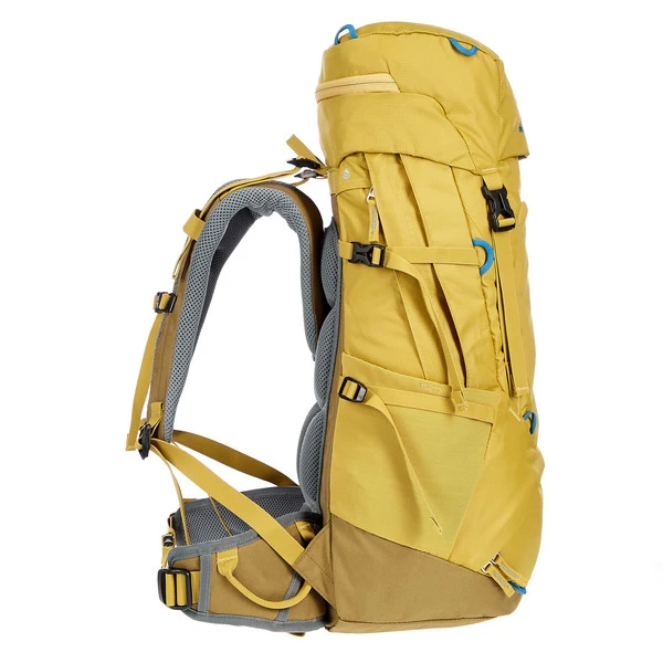 Der Trekkingrucksack für Kinder ist in ein Hauptfach und ein Bodenfach aufgeteilt. Das macht das Ent- und Bepacken am Zelt leicht. Oft gebrauchte Gegenstände können in der RV-Tasche auf dem Hüftgurt, der seitlichen Balgtasche oder dem Deckelfach verstaut werden. Mehrere Materialschlaufen ermöglichen das Befestigen von Karabinern, Handschuhen und Fundstücken. Die elastischen Seitenfächer können eine Trinkflasche oder das Zeltgestänge aufnehmen.