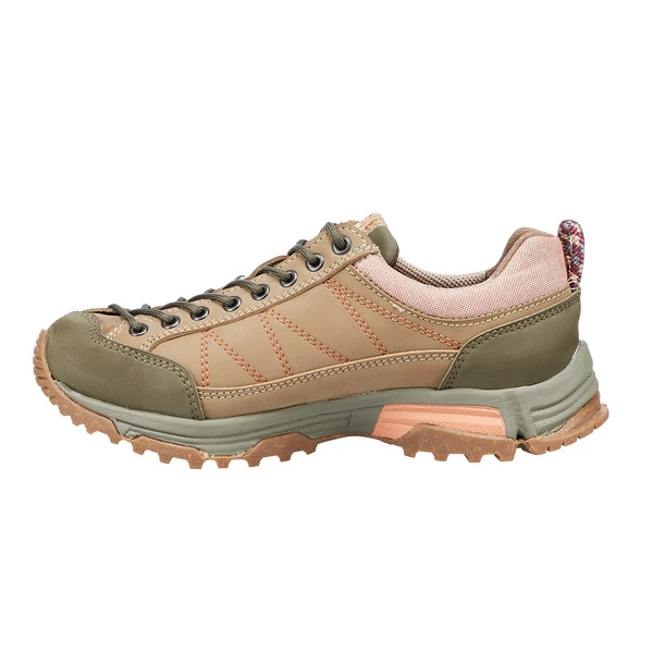 Der Halbschuh verfügt für bestmöglichen Halt im Gelände über eine griffige Vibram Gummi-Profilsohle und bietet dir dank kräftiger Zwischensohle auch auf längeren Zustiegen zuverlässig Komfort. Eine herausnehmbare Innensohle aus recyceltem Kork und EVA sorgt ebenfalls für angenehmen Komfort.
