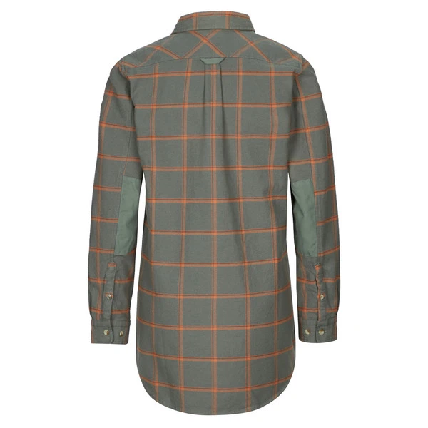 Außerdem verfügt die attraktive Bluse über nützliche Details. Beispielsweise kommen verstärkte Ellenbogen aus G-1000 Eco zum Einsatz. Für Kleinigkeiten, die unterwegs schnell zur Hand sein müssen, verfügt die Bluse über zwei Brusttaschen, die mit Knopf und Patte geöffnet und geschlossen werden.