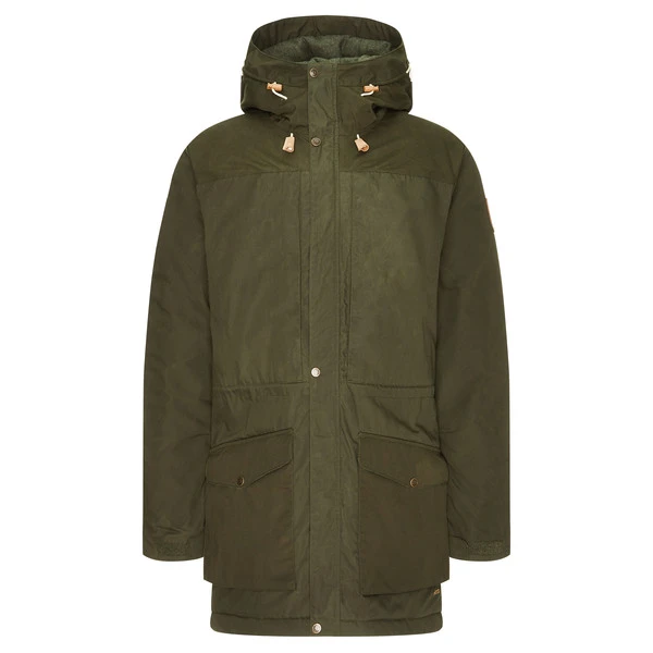 Der Winter-Parka besteht aus angenehm leichten G-1000 Lite und wurde an den Schultern, an der Kapuze und an den Fronttaschen mit robusterem G-1000 Eco verstärkt. Beide Materialien sind wind- und wasserabweisend. So ist es nicht weiter schlimm, wenn du mal in einen kleinen Regenschauer gerätst. Um den Wetterschutz dauerhaft zu erhalten, kannst du den Parka von Zeit zu Zeit mit Greenland Wax (siehe Zubehör) nachimprägnieren.