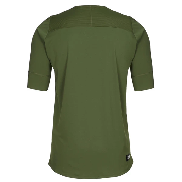 Leger geschnittenes Fahrradshirt mit schnelltrocknendem Recycling-Material und einem luftig gewebten Meshmaterial hinten im Schulterbereich. Die Ärmel sind weit genug geschnitten für Protektoren.