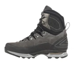 Als Obermaterial kommt hauptsächlich Veloursleder zum Einsatz. Hierbei handelt es sich um speziell gewachstes Perwanger Leder, das durch seine außergewöhnliche Widerstandsfähigkeit beeindruckt. Auch verfügt der Stiefel über einen hochgezogenen Geröllschutzrand aus Gummi. Im Bereich der Ferse ist die Schutzkappe besonders weit hochgezogen.