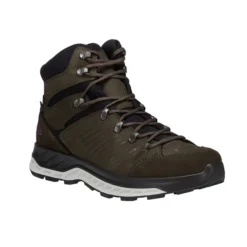 Als Obermaterial kommt hauptsächlich Veloursleder zum Einsatz. Hierbei handelt es sich um speziell gewachstes Perwanger Leder, das durch seine außergewöhnliche Widerstandsfähigkeit beeindruckt. Auch verfügt der Stiefel über einen hochgezogenen Geröllschutzrand aus Gummi. Im Bereich der Ferse ist die Schutzkappe besonders weit hochgezogen.