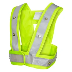 Sichtbarkeit der nächsten Stufe: Diese Fahrradweste wirft auftreffendes Licht nicht nur zurück, sondern leuchtet auch noch selbst! Die eingebauten Leuchtdioden machen es möglich.