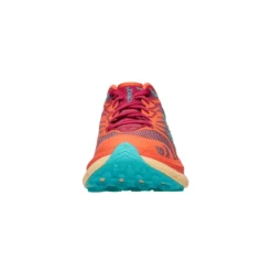 Es kann sich hier aber auch der Oberaufbau sehen lassen. Dank synthetischer Materialien, aus denen der Schuh ausschließlich besteht, ist er zum einen leicht, zum anderen aber auch besonders luftig. Das Jaquard-Mesh in einlagiger Machart sorgt auch bei hohen Temperaturen für ein ausgeglichenes Trageklima und einen optimalen Feuchtigkeitsabtransport, weg vom Fuß hin an die Umgebungsluft. Im Zehenbereich sorgen TPU-Overlays für Schutz.