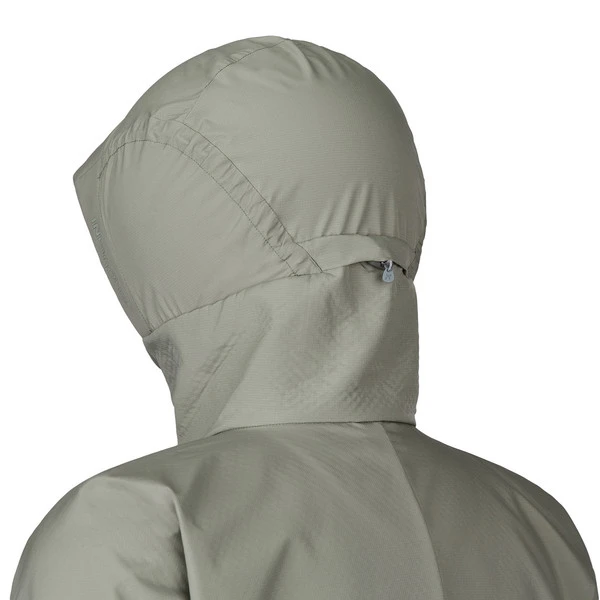 Das Obermaterial der Jacke ist mit einer dauerhaft wasserabweisenden PFC-freien DWR-Ausrüstung versehen. Somit stellt auch etwas Nässe bei deiner Wander- oder Trekkingtour kein Problem dar. Zusätzlichen Schutz bei Wind und Nieselregen bietet die am Hinterkopf regulierbare Kapuze. Die beiden hoch angebrachten RV-Taschen bieten Komfort beim Tragen eines Becken- oder Klettergurtes.