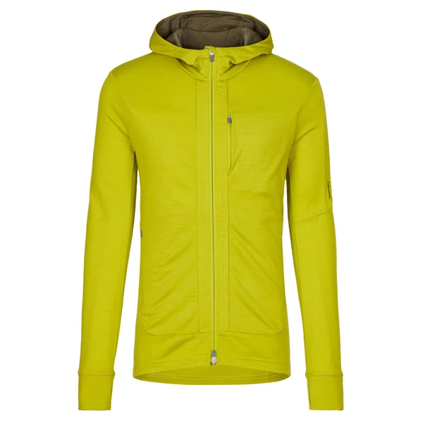 Die Kapuzenjacke ist vergleichsweise dünn und schmal geschnitten, so kann sie prima als wärmender Midlayer eingesetzt werden. Die Innenseite mit leichter Schlingen-Struktur speichert deine Körperwärme besonders effektiv und liegt angenehm weich auf der Haut. Das Merinowoll-Material leitet entstehende Feuchtigkeit schnell ab und reguliert die Körpertemperatur. So wird dir weder zu warm noch zu kalt in der Jacke. Gerade wenn sich bei deinen Aktivitäten häufig Belastungs- und Erholungsphasen abwechseln, ist das natürlich ein großer Vorteil!
