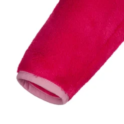 Das Besondere an dieser farbenfrohen Jacke ist das hochflorige Fleecematerial. Es ist besonders warm und kuschlig. An den Schultern ist winddichtes, robustes Material verarbeitet. Es schützt den Nacken noch einmal zusätzlich vor kaltem Wind.