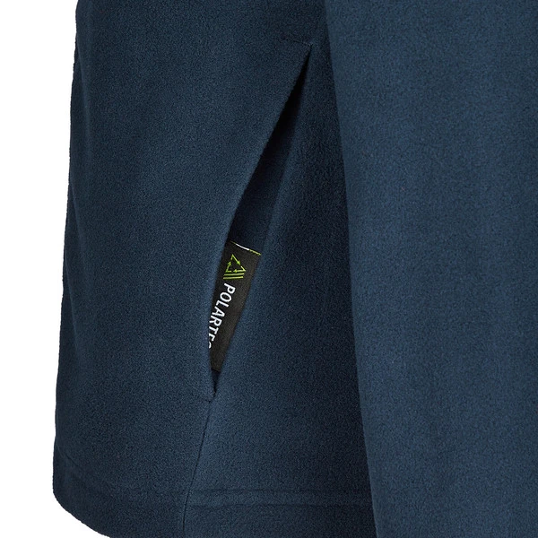 Zum guten Sitz der Fleecejacke tragen die Elastikeinfassungen an den Ärmelbündchen bei. Der Stehkragen sorgt für zusätzlichen Schutz vor kühlem Wind. Für wichtige Kleinigkeiten und zum Händeaufwärmen stehen zwei Einschubtaschen zur Verfügung.