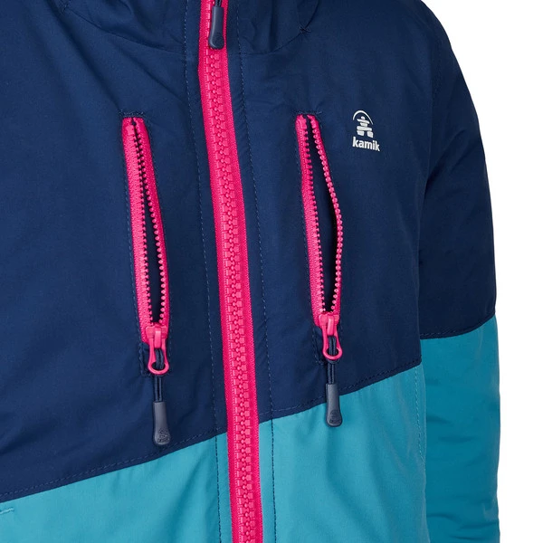 Durch die DriDefense Membran sowie die PFC-freie DWR-Imprägnierung ist das Außenmaterial der tollen Jacke zuverlässig wind- wasserdicht sowie schmutz- und wasserabweisend. Somit können deine Kinder bedenkenlos im Schnee toben oder die Piste hinabfahren. Und genießen dabei dank guter Atmungsaktivität ein angenehmes Innenklima. Zudem werden sie durch die Kunstfaser-Wattierung wohlig warmgehalten. Während das weiche Fleece-Innenmaterial mit gutem Feuchtigkeitstransport aufwartet.