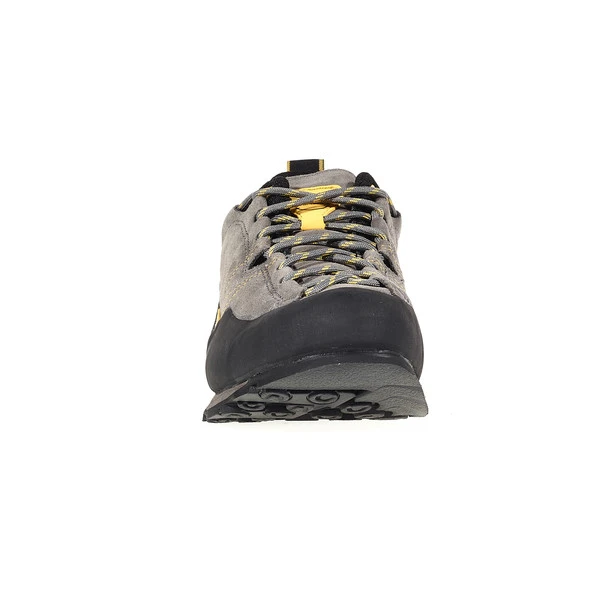 So wird der Boulder X zu einem optimalen Begleiter für leidenschaftliche Wanderer und Kletterer. Aus strapazierfähigem Suedeleder und abriebfestem Gummi.