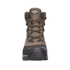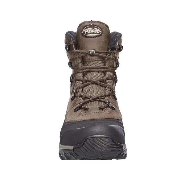 Als Obermaterial kommt ein robuster Mix aus kräftigem Nubukleder und ebenfalls sehr widerstandsfähigen synthetischen Materialien zum Einsatz. Dadurch ist der Stiefel bestens für harte Einsätze geeignet. Unter Schnee verborgene Felsen oder Gestrüpp können dem Stiefel so nichts anhaben. Hier kommt auch der nicht nur umlaufende, sondern auch weit hochgezogene Schutzrand in Galoschenart zum Tragen. Durch ihn wird der Stiefel aber auch noch unempfindlicher gegenüber Nässe.
