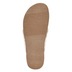 Die breiten Riemen sind kräftig gepolstert und mit weichem Synthetikgewebe unterfüttert. Für ausgleichende Standfestigkeit sorgt eine Gummilaufsohle mit flachem Profil.