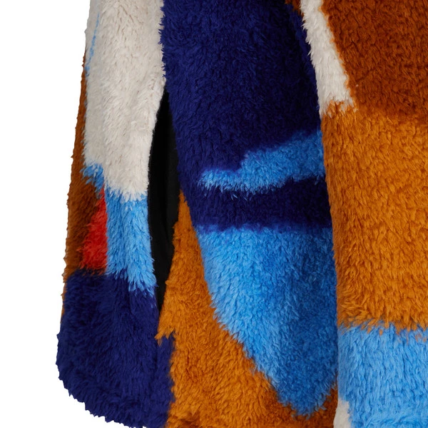Die Jacke besteht aus Polyester-Gewebe, das über die Hälfte recycelt ist. An der Außenseite kommt ein superflauschiges Teddyfleece zum Einsatz, welches genau wie das Fleece-Material im Innern wohlig wärmt. Auch der hohe Kragen bietet deinen Kindern eine angenehme Portion Wärme. Dagegen ist der Front-RV für ein wenig Abkühlung und ein leichtes An- und Ausziehen verantwortlich. Nicht zu vergessen die kunterbunte Optik, die am liebsten gar nicht unter einer Winterjacke versteckt werden will – was bei mildem Wetter durchaus möglich ist (auch genial mit einer Weste).