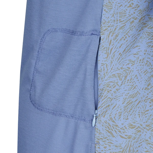 Vorder- und Rückseite der Bluse sind unterschiedlich gearbeitet, um dir unterwegs hohen Komfort zu gewähren: Das Gewebe aus recyceltem Polyester auf der Vorderseite ist haltbar, dehnbar und transportiert Feuchtigkeit ab. Außerdem sorgt es für eine schmeichelnde Passform. Das gestrickte Polyestergemisch auf der Rückseite zeigt sich atmungsaktiv, weich, schnelltrocknend und besteht fast kompett aus recyceltem Material.