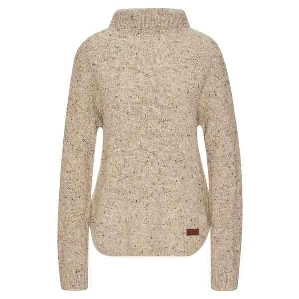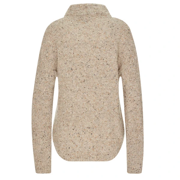Der weite Schnitt mit stark abgerundetem Saum verleiht dem Pullover einen sehr bequemen Sitz und eine lässige, moderne Passform. Mit seiner hübschen Mélange-Optik und dem dezenten Strickmuster, das von Wandteppichen aus Bhutan inspiriert ist, bringt der Yuden Pullover Sweater noch dazu hübsche Farbtupfer in den grauen Herbst- und Winteralltag.