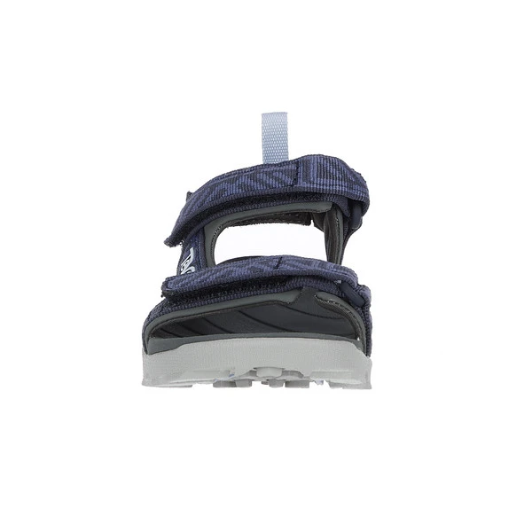 Feine Rillen machen die Oberfläche des Fußbetts rutschfest. Die Laufsohle ist kräftig profiliert und in den relevanten Zonen stützend hochgezogen. Sollknickstellen unter dem Ballen unterstützen das Abrolmit schmalen, weich unterpolstertern Riemchenlverhalten. Geschlossen wird die Sandale mit drei kräftigen Klettriemen über Vorderfuß, Spann und an der Ferse.
