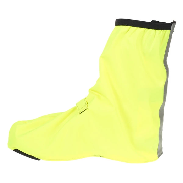 Praktisch bei Regen und Matsch: stabile, wind- und wasserdichte Rad-Überschuhe mit verstärkter Sohlenspitze. Mit reflektierenden Elementen seitlich und hinten. In Schwarz oder Leuchtend-Gelb zu haben.