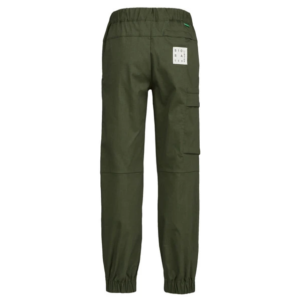 Der Großteil der Hose besteht aus weicher Bio-Baumwolle, die für das komfortabele Tragegefühl verantwortlich ist. Recyceltes Polyester gibt Formstabilität und sorgt dafür, dass sich die Trocknungsdauer gegenüber reiner Baumwolle verkürzt. Ein wenig Elasthan bringt eine gute Portion Dehnbarkeit mit sich, damit sich nach Herzenslust ausgetobt werden kann.